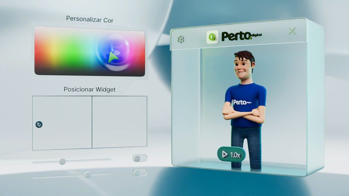 Foram criados diversas peças de curtas animações 3D para resumir e facilitar o entendimento de quais são e como funcionam as ferramentas da Perto Digital, um plugin de acessibilidade digital para sites. Os avatares já existentes foram adaptados para este formato de animação 3D e o layout do plugin em html foi totalmente remodelado em 3D e inserido em um cenário que unifica os elementos da marca.